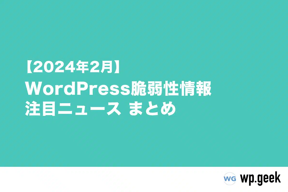 【2024年2月】WordPress脆弱性情報&注目ニュース まとめ|TDU(東京電機大学)学生がWordPress用プラグインの脆弱性を発見など